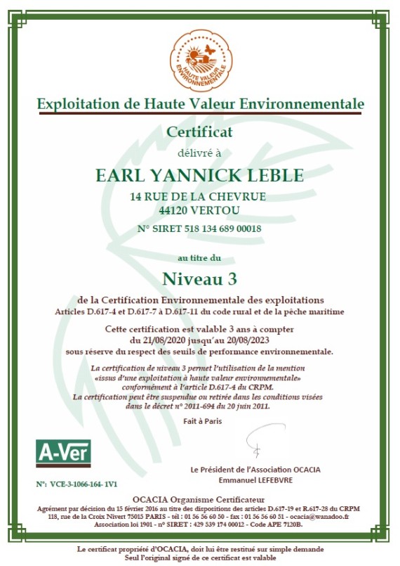 Le travail de la vigne se fait tout au long de l’année. Nous avons une optique de viticulture raisonnée qui prône à protéger au mieux l’environnement, label HVE. Il faut avoir un contrôle permanent dessus pour savoir si une maladie se déclare ou si la maturité du raisin est atteinte et que l’on peut commencer les vendanges. Celles-ci se font d’ailleurs entièrement à la machine.